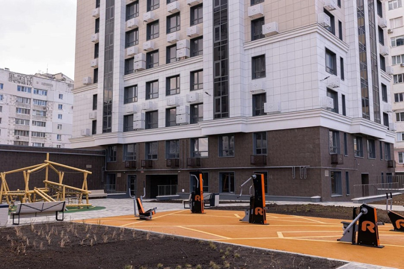 Спортивная часть площадки может включать в себя турники, тренажеры, беговые дорожки и мини-футбольные поля. Приятным дополнением станут зоны для йоги или пилатеса, а также столы для настольного тенниса.