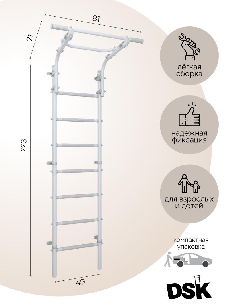 Шведская стенка DSK 4.0 — универсальный домашний тренажер, который заменяет целый спортивный зал, экономя место в вашем доме. Оснащенная подвижным турником и широкими массажными ступенями, она подходит для тренировок всех членов семьи: от малышей до взрослых. Современный серый дизайн органично впишется в любой интерьер, добавляя спортивный стиль вашему пространству.