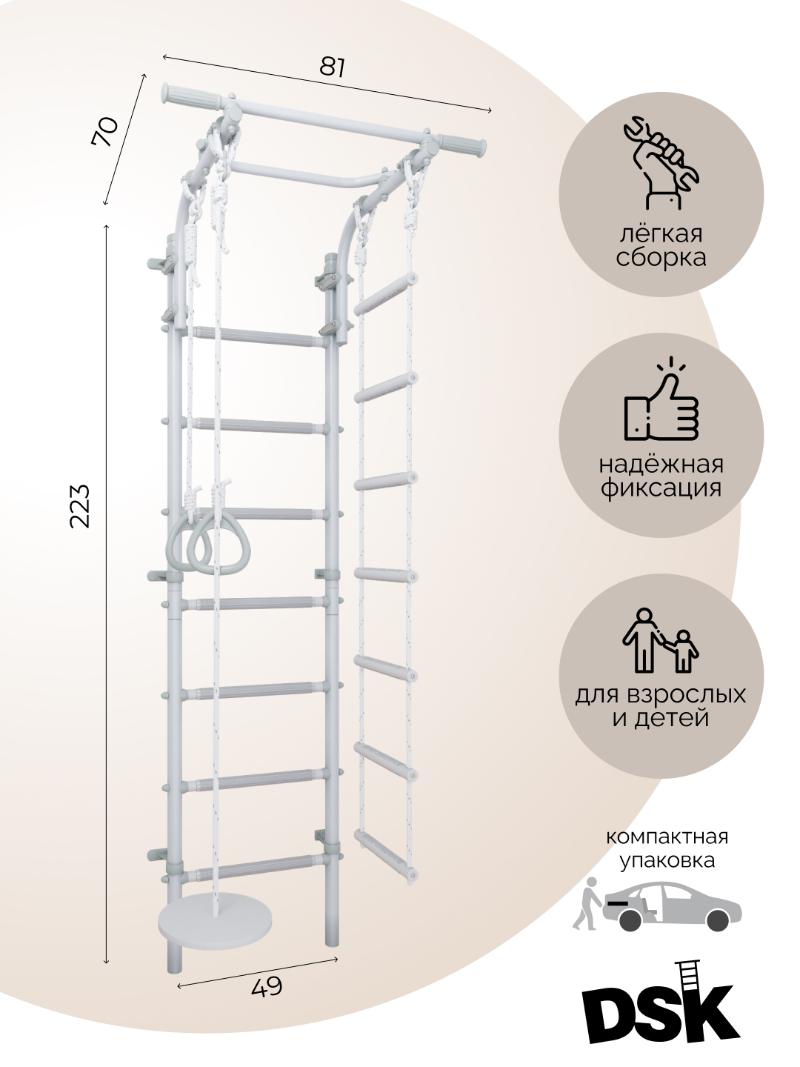 Шведская стенка DSK 4.3 — это компактный и универсальный спортивный комплекс, который подарит вам возможность заниматься спортом дома всей семьей. Благодаря регулируемому турнику и продуманной конструкции, он подходит как для взрослых, так и для детей, заменяя целый спортивный зал. Теперь вы сможете тренировать мышцы рук, ног, спины и пресса, улучшать растяжку и развивать выносливость, не выходя из квартиры.