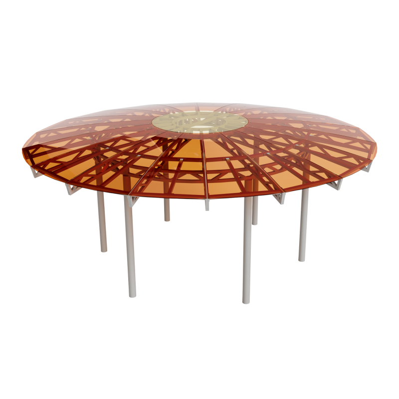 Каркас - сталь конструкционная, покрытие - цинкосодержащий грунт, окраска полимерным порошком или двухкомпонентной полиуретан-акриловой краской. Обшивка - монолитный поликарбонат.
