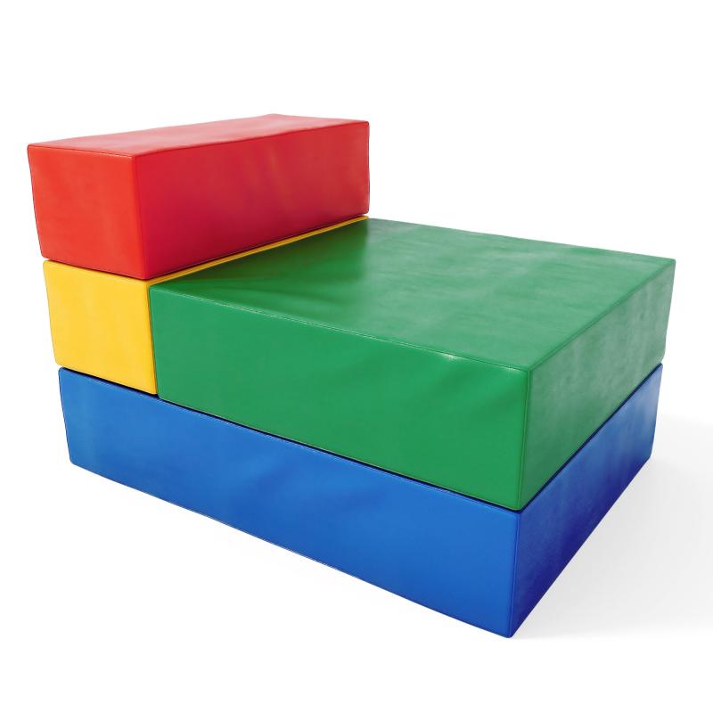 Кресло ДМФ-МК-01.93.04 - состоит из четырех разноцветных деталей, с помощью которых можно создать разнообразные кресла и диванчики для отдыха, а также множество прочих игровых конструкций.