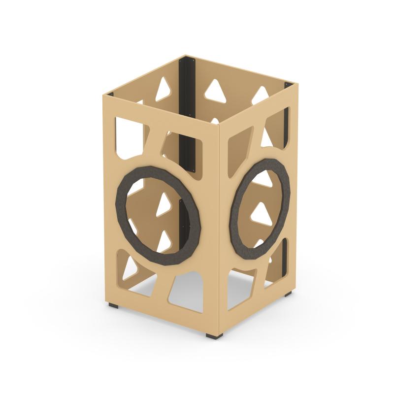 В сборе представляет собой конструкцию в виде прямоугольного вертикального изделия, собранного со стенками с помощью уголков, установлена на грунтозацепы.Изделие устанавливается на открытых уличных участках, находящихся под контролем ответственного лица – эксплуатанта. Установка Изделия должна проводится на ровной площадке, свободной от насаждений. В зоне приземления должно быть ударопоглощающее покрытие (песок, древесные опилки) минимальной толщиной 300 мм.