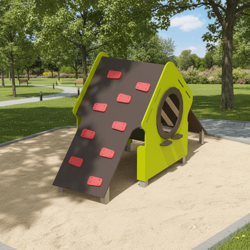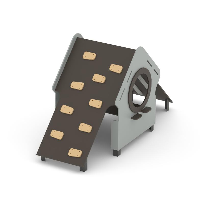 Игровой модуль для тематических игр и физического развития предназначен для детей в возрасте от 4 до 8 лет. Изделие должно представлять собой устойчивую конструкцию, обеспечивающую безопасные условия для занятий на открытом воздухе. Конструкция должна обладать высокой ударопрочностью и виброустойчивостью.В сборе представляет собой конструкцию в виде домика с отверстиями лазами и надстроенными над ними лазами наклонными.Изделие устанавливается на открытых уличных участках, находящихся под контролем ответственного лица – эксплуатанта. Установка Изделия должна проводится на ровной площадке, свободной от насаждений. В зоне приземления должно быть ударопоглощающее покрытие (песок, древесные опилки) минимальной толщиной 300 мм.