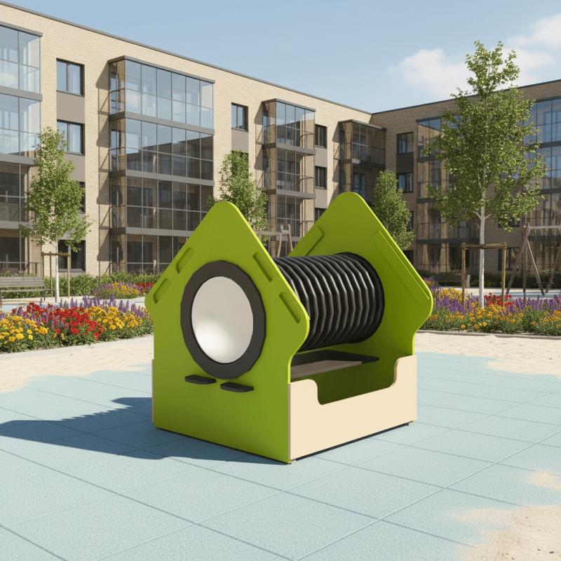 Игровой модуль для тематических игр и физического развития предназначен для детей в возрасте от 4 до 8 лет. Изделие должно представлять собой устойчивую конструкцию, обеспечивающую безопасные условия для занятий на открытом воздухе. Конструкция должна обладать высокой ударопрочностью и виброустойчивостью.В сборе представляет собой конструкцию в виде домика с гофрированной трубой.Изделие устанавливается на открытых уличных участках, находящихся под контролем ответственного лица – эксплуатанта. Установка Изделия должна проводится на ровной площадке, свободной от насаждений. В зоне приземления должно быть ударопоглощающее покрытие (песок, древесные опилки) минимальной толщиной 300 мм.