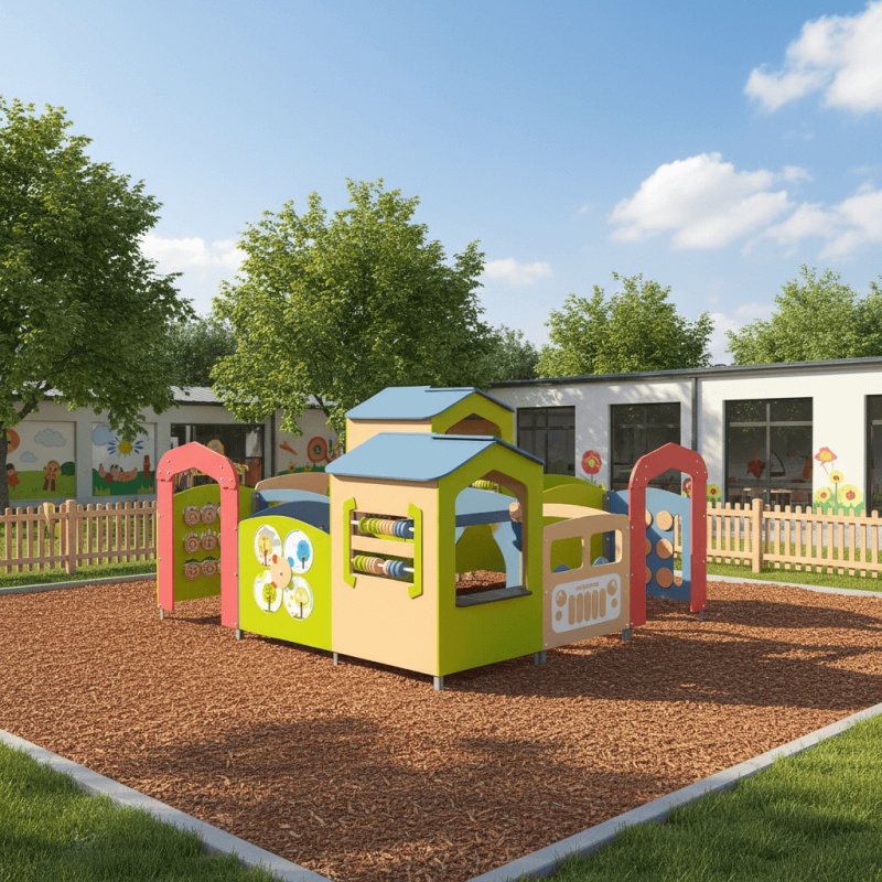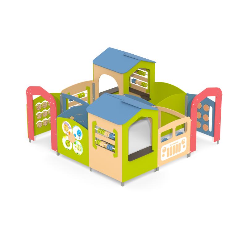 Домик-лабиринт для тематических игр предназначен для детей в возрасте от 3 до 7 лет. Изделие представляет собой сборно-разборную каркасную конструкцию из металлических стоек и фанерных элементов.