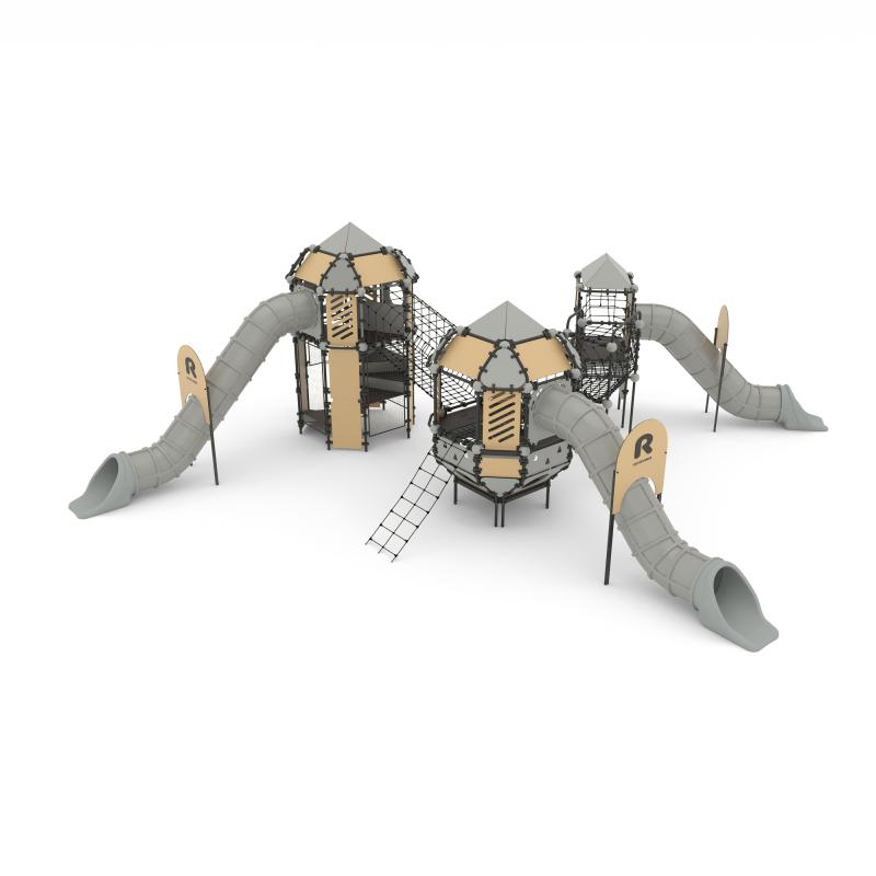 Комплекс с тремя башнями оснащен двумя канатными лестницами для доступа на стартовую площадку, тремя туннельными горками закрытого типа и канатными туннелями.