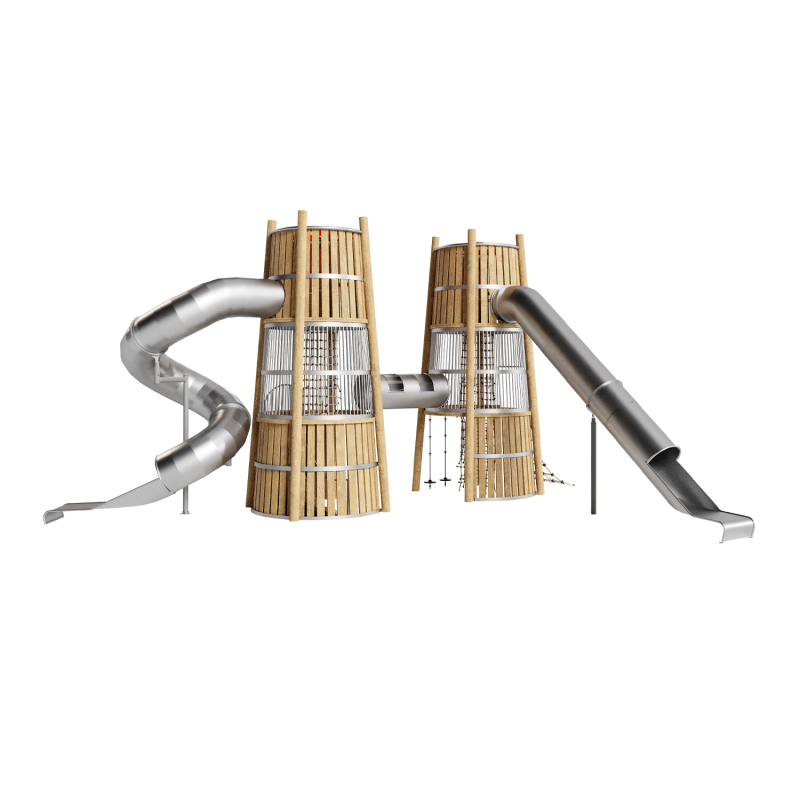 Каркас, обшивка - дерево, обработанное антисептиком и маслом террасным атмосферостойким для древесины в 2 слоя. Горка - сталь нержавеющая AISI 304 толщиной не менее 2 мм, электрохимическая пассивация сварных швов. Канатные сети - канат армированный 16 мм.