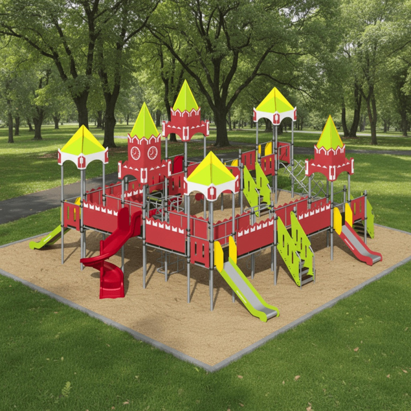 Детская площадка «Кремль» - это большой комплекс в виде московской кремлевской стены с башенками, переходами, спиральными и прямыми горками, турниками, разными лестницами. Хорошо развивает координацию и ловкость у детей, укрепляет мышцы. Подходит для больших детских игровых площадок.Изделие устанавливается на открытых уличных участках, находящихся под контролем ответственного лица – эксплуатанта. Установка Изделия должна проводится на ровной площадке, свободной от насаждений. В зоне приземления должно быть ударопоглощающее покрытие (песок, древесные опилки) минимальной толщиной 300 мм
