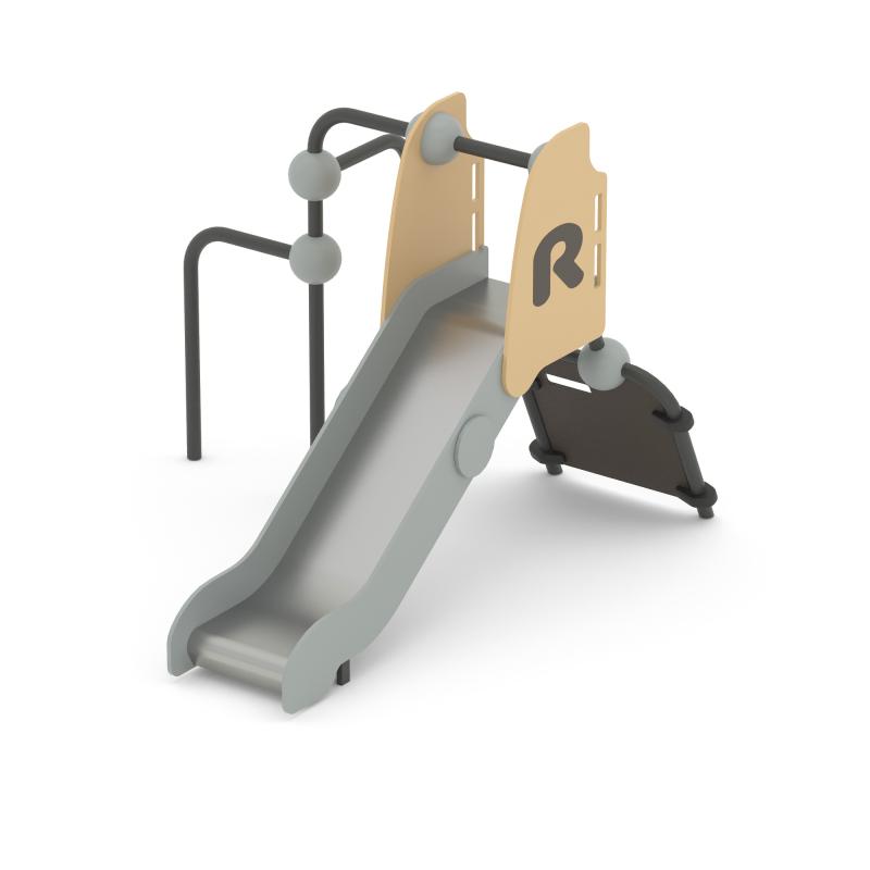 Конструкция обладает высокой ударопрочностью и виброустойчивостью. Во избежание травм и застревания одежды и частей тела, изделие разработано и изготовлено в соответствии с требованиями ГОСТ Р 52169-2012.Выполнен в виде металлических стоек из 057 трубы, соединенный шарами, имеется горка h=950 мм.