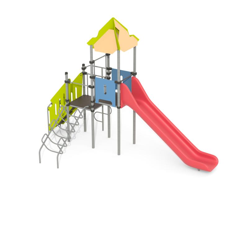 Детская площадка «Romana 101.03.09» - игровой комплекс с различными лесенками и горкой. Не требует много места. Помогает развить ребенку ловкость и гибкость, а так же укрепить мышцы.Изделие устанавливается на открытых уличных участках, находящихся под контролем ответственного лица – эксплуатанта. Установка Изделия должна проводится на ровной площадке, свободной от насаждений. В зоне приземления должно быть ударопоглощающее покрытие (песок, древесные опилки) минимальной толщиной 300 мм