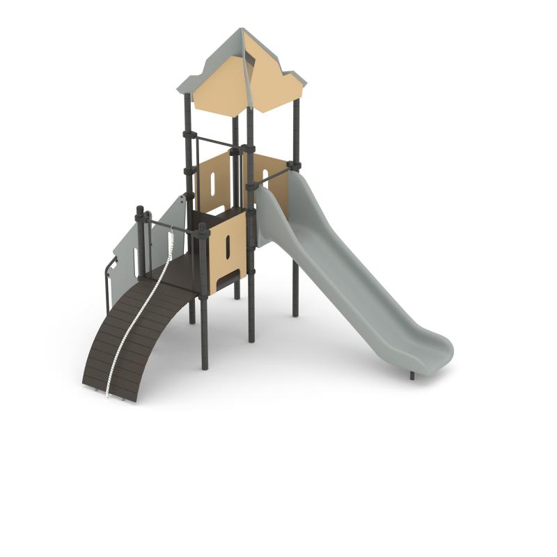 Детская площадка «Romana 101.05.09» - маленький игровой комплекс с домиком, горкой и лазом. Подходит даже для самых маленьких площадок.Изделие устанавливается на открытых уличных участках, находящихся под контролем ответственного лица – эксплуатанта. Установка Изделия должна проводится на ровной площадке, свободной от насаждений. В зоне приземления должно быть ударопоглощающее покрытие (песок, древесные опилки) минимальной толщиной 300 мм