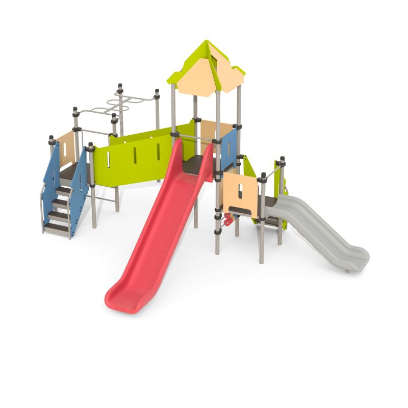 Детская площадка «Romana 101.09.09» - это комплекс горками, различными лестницами, турниками, рукоходами и переходом. Хорошо развивает координацию и ловкость у детей, укрепляет мышцы. Подходит для любых детских игровых площадок.Изделие устанавливается на открытых уличных участках, находящихся под контролем ответственного лица – эксплуатанта. Установка Изделия должна проводится на ровной площадке, свободной от насаждений. В зоне приземления должно быть ударопоглощающее покрытие (песок, древесные опилки) минимальной толщиной 300 мм