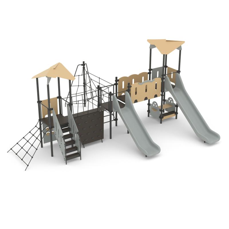 Игровой комплекс для тематических игр и физического развития предназначен для детей в возрасте от 8 лет. Изделие представляет собой сборно-разборную каркасную конструкцию из металлических труб, установленную на забетонированные стойки.Изделие устанавливается на открытых уличных участках, находящихся под контролем ответственного лица – эксплуатанта. Установка Изделия должна проводится на ровной площадке, свободной от насаждений. В зоне приземления должно быть ударопоглощающее покрытие (песок, древесные опилки) минимальной толщиной 300 мм