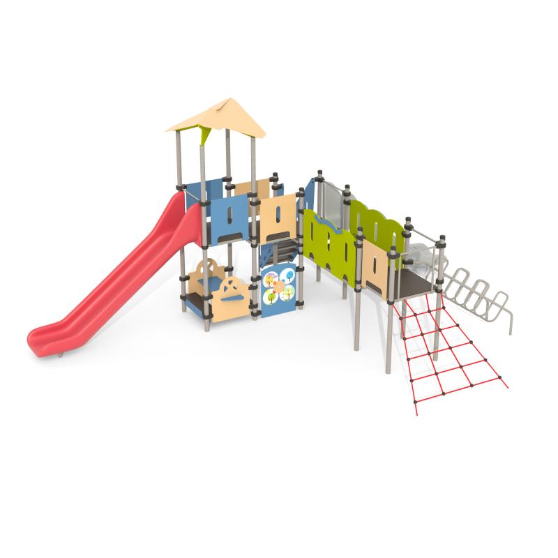 Игровой комплекс для тематических игр и физического развития предназначен для детей в возрасте от 8 лет. Изделие представляет собой сборно-разборную каркасную конструкцию из металлических труб, установленную на забетонированные стойки.Изделие устанавливается на открытых уличных участках, находящихся под контролем ответственного лица – эксплуатанта. Установка Изделия должна проводится на ровной площадке, свободной от насаждений. В зоне приземления должно быть ударопоглощающее покрытие (песок, древесные опилки) минимальной толщиной 300 мм