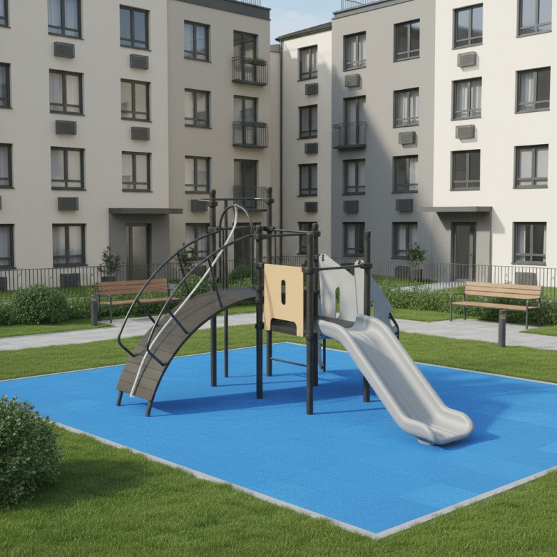 Игровой комплекс для тематических игр и физического развития предназначен для детей в возрасте от 8 лет. Изделие представляет собой сборно-разборную каркасную конструкцию из металлических труб, установленную на забетонированные стойки.Изделие устанавливается на открытых уличных участках, находящихся под контролем ответственного лица – эксплуатанта. Установка Изделия должна проводится на ровной площадке, свободной от насаждений. В зоне приземления должно быть ударопоглощающее покрытие (песок, древесные опилки) минимальной толщиной 300 мм.
