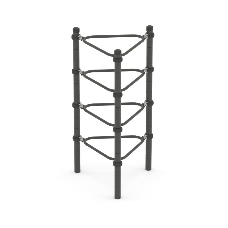 Спортивно - игровой комплекс для тематических игр и физического развития предназначен для детей в возрасте от 8 до 12 лет. Изделие представляет собой устойчивую конструкцию, обеспечивающую безопасные условия для занятий на открытом воздухе. Конструкция обладает высокой ударопрочностью и виброустойчивостью.Выполнен в виде металлических стоек, образующих треугольник.
