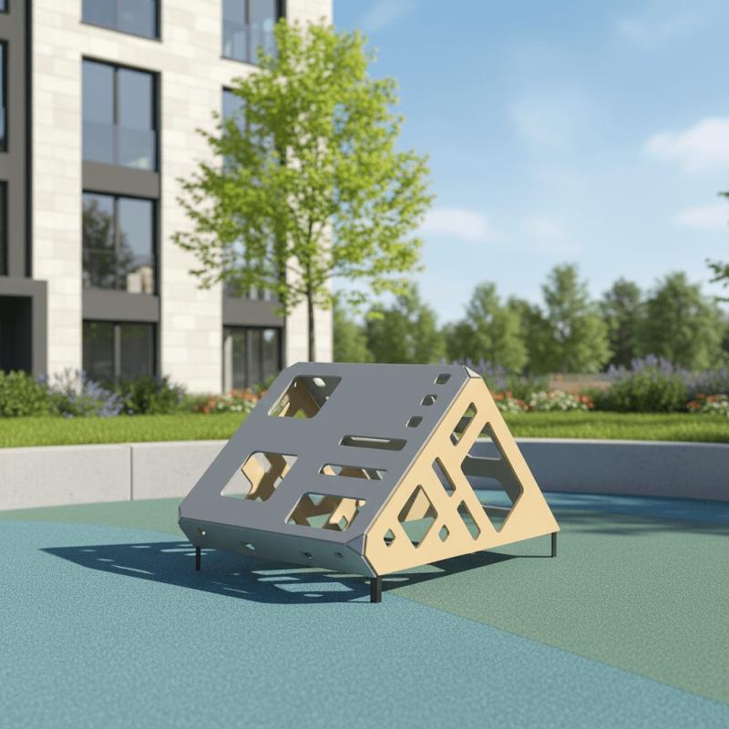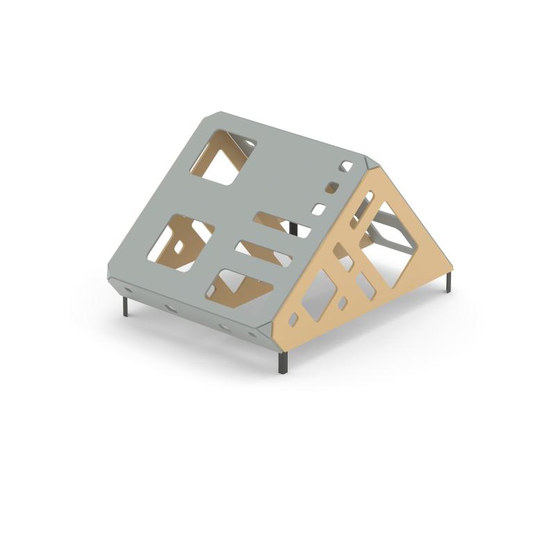 Игровой модуль для тематических игр и физического развития предназначен для детей в возрасте от 4 до 8 лет. Изделие должно представлять собой устойчивую конструкцию, обеспечивающую безопасные условия для занятий на открытом воздухе. Конструкция должна обладать высокой ударопрочностью и виброустойчивостью.В сборе представляет собой конструкцию в виде каркаса из панелей с отверстиями, скрепленную уголками и грунтозацепами.Изделие устанавливается на открытых уличных участках, находящихся под контролем ответственного лица – эксплуатанта. Установка Изделия должна проводится на ровной площадке, свободной от насаждений. В зоне приземления должно быть ударопоглощающее покрытие (песок, древесные опилки) минимальной толщиной 300 мм.