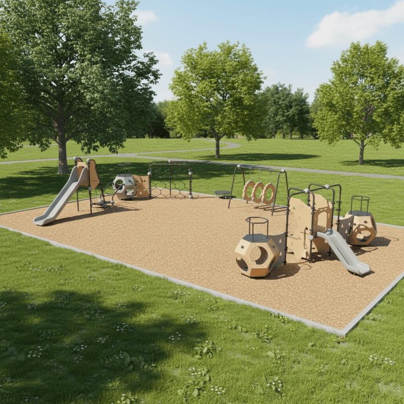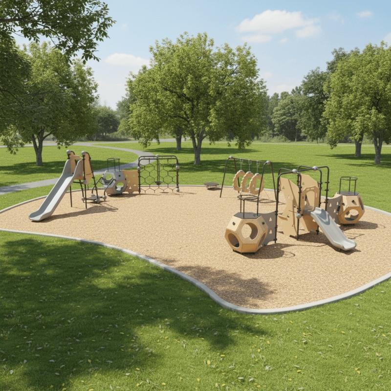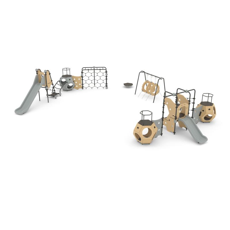 Горка, октаэдр, деревянная стенка, сетчатая стенка для лазанья.