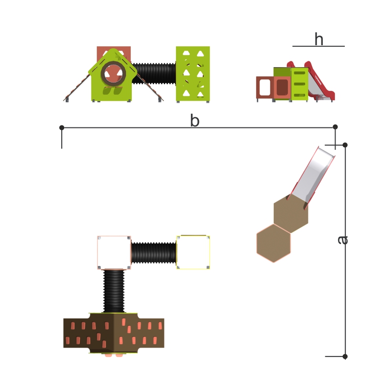 Игровой модуль для тематических игр и физического развития предназначен для детей в возрасте от 4 до 8 лет. Изделие должно представлять собой устойчивую конструкцию, обеспечивающую безопасные условия для занятий на открытом воздухе. Конструкция должна обладать высокой ударопрочностью и виброустойчивостью.