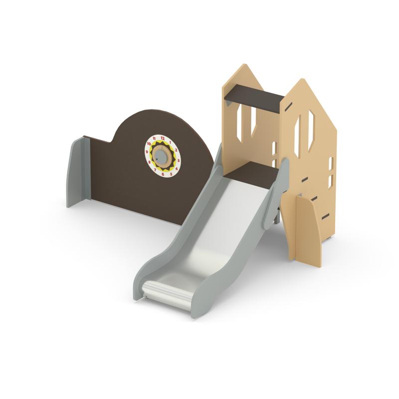 Игровой модуль для тематических игр и физического развития предназначен для детей в возрасте от 2 до 8 лет. Изделие должно представлять собой устойчивую конструкцию, обеспечивающую безопасные условия для занятий на открытом воздухе. Конструкция должна обладать высокой ударопрочностью и виброустойчивостью.В сборе представляет собой конструкцию в виде горки с игровой панелью.Изделие устанавливается на открытых уличных участках, находящихся под контролем ответственного лица – эксплуатанта. Установка Изделия должна проводится на ровной площадке, свободной от насаждений. В зоне приземления должно быть ударопоглощающее покрытие (песок, древесные опилки) минимальной толщиной 300 мм.