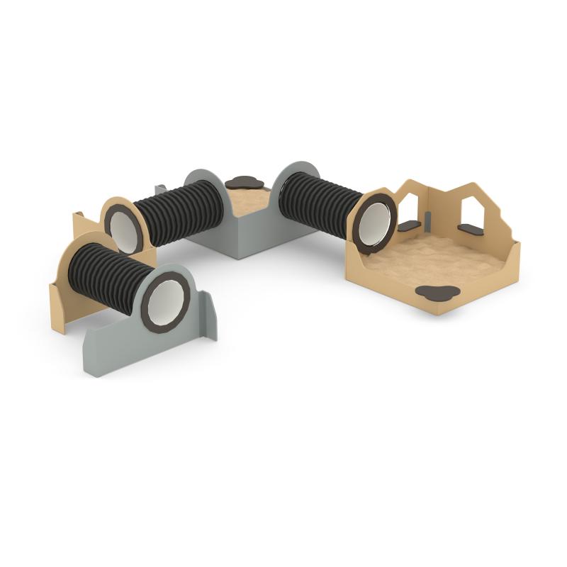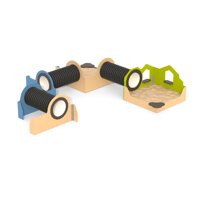 Игровой модуль для тематических игр и физического развития предназначен для детей в возрасте от 2 до 8 лет. Изделие должно представлять собой устойчивую конструкцию, обеспечивающую безопасные условия для занятий на открытом воздухе. Конструкция должна обладать высокой ударопрочностью и виброустойчивостью.В сборе представляет собой конструкцию в виде песочницы, которая присоединена к песочнице-домику и домику игровому посредством соединений в виде труб гофрированных.Изделие устанавливается на открытых уличных участках, находящихся под контролем ответственного лица – эксплуатанта. Установка Изделия должна проводится на ровной площадке, свободной от насаждений. В зоне приземления должно быть ударопоглощающее покрытие (песок, древесные опилки) минимальной толщиной 300 мм.