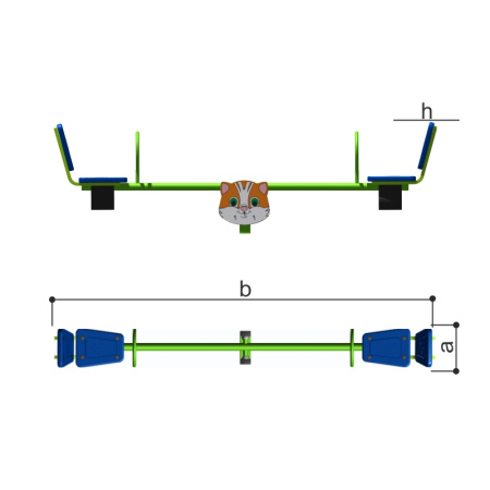 Качалка-балансир предназначена для размещения на территориях детских дошкольных учреждениях, парков, дворовых территориях и мест общественного отдыха с целью организации досуга и гармоничного развития детей в возрасте от 4 лет. Может эксплуатироваться круглогодично во всех климатических зонах.Конструктивно состоит из стойки, балки, сиденья в сборе и буфера, декорации «кот».