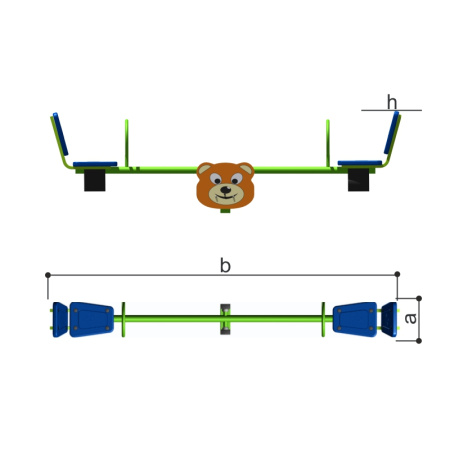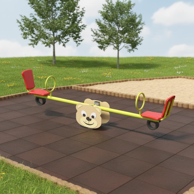 Качалка-балансир предназначена для размещения на территориях детских дошкольных учреждениях, парков, дворовых территориях и мест общественного отдыха с целью организации досуга и гармоничного развития детей в возрасте от 4 лет. Может эксплуатироваться круглогодично во всех климатических зонах.Конструктивно состоит из стойки, балки, сиденья в сборе и буфера, декорации «мишка».