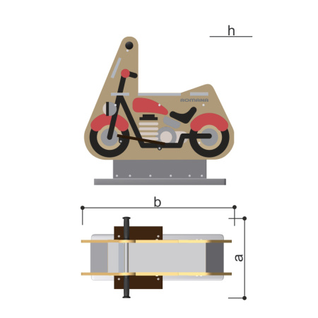 Качалка для тематических игр, предназначена для детей в возрасте от 2 лет. На фигурную вставку при помощи УФ-печати нанесено изображение в тематике «мотоцикл».