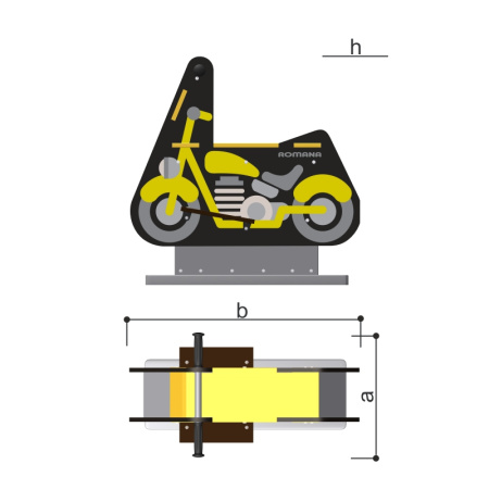 Качалка для тематических игр, предназначена для детей в возрасте от 2 лет. На фигурную вставку при помощи УФ-печати нанесено изображение в тематике «мотоцикл».Конструкция качалки предоставляет возможность качаться пользователю по оси «вперед-назад». Изделие приходит в движение за счет переноса веса ребенка - совершения раскачивающих движений «назад-вперед». Платформа обеспечивает плавное легкое качание, без ударов и усилий.
