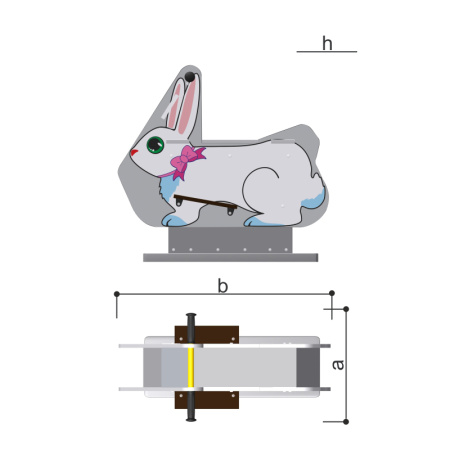 Качалка для тематических игр, предназначена для детей в возрасте от 2 лет. На фигурную вставку при помощи УФ-печати нанесено изображение в тематике «кролик».Конструкция качалки предоставляет возможность качаться пользователю по оси «вперед-назад». Изделие приходит в движение за счет переноса веса ребенка - совершения раскачивающих движений «назад-вперед». Платформа обеспечивает плавное легкое качание, без ударов и усилий.