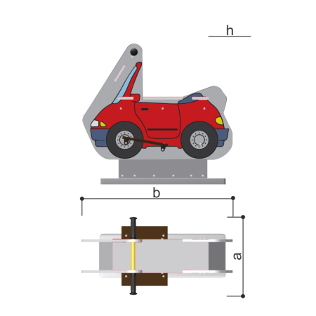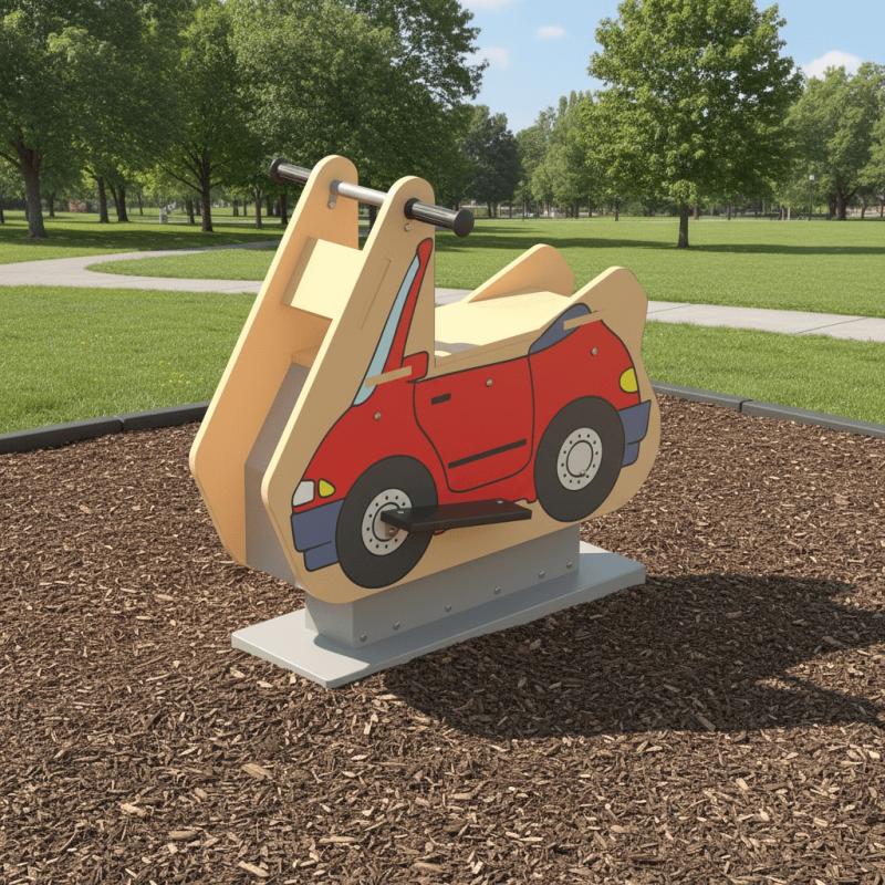 Качалка для тематических игр, предназначена для детей в возрасте от 2 лет. На фигурную вставку при помощи УФ-печати нанесено изображение в тематике «автомобиль».Конструкция качалки предоставляет возможность качаться пользователю по оси «вперед-назад». Изделие приходит в движение за счет переноса веса ребенка - совершения раскачивающих движений «назад-вперед». Платформа обеспечивает плавное легкое качание, без ударов и усилий.