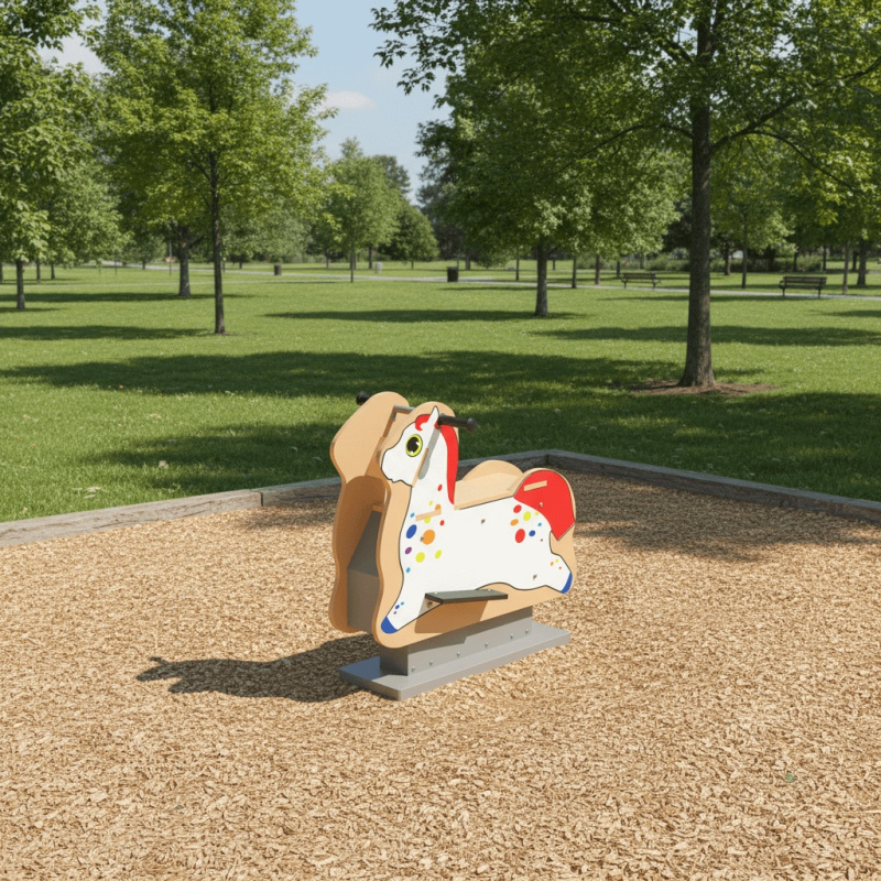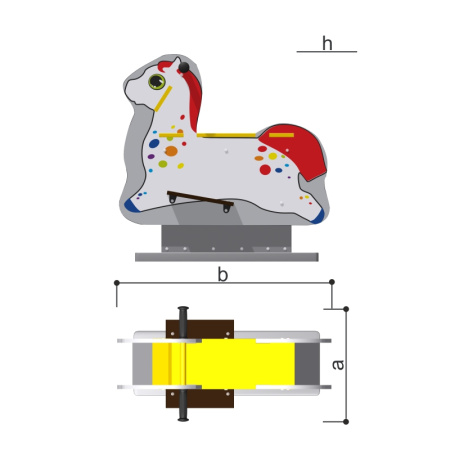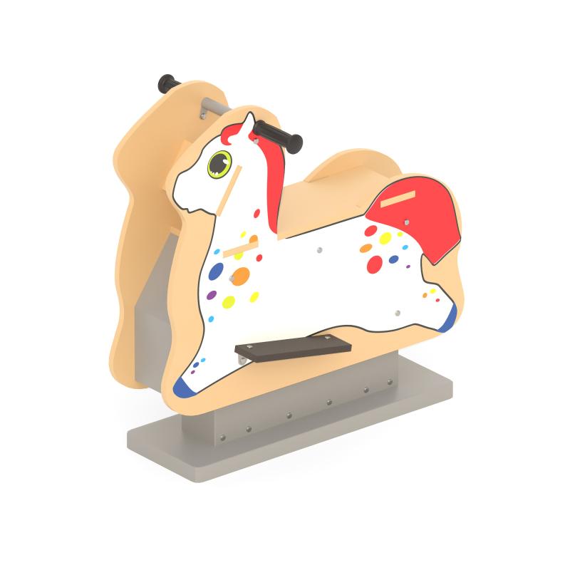 Качалка для тематических игр, предназначена для детей в возрасте от 2 лет. На фигурную вставку при помощи УФ-печати нанесено изображение в тематике «лошадка».Конструкция качалки предоставляет возможность качаться пользователю по оси «вперед-назад». Изделие приходит в движение за счет переноса веса ребенка - совершения раскачивающих движений «назад-вперед». Платформа обеспечивает плавное легкое качание, без ударов и усилий.