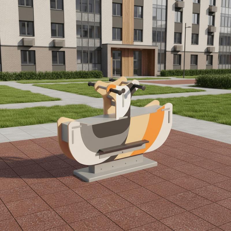 Качалка для тематических игр, предназначена для детей в возрасте от 2 лет, двухместная. На фигурную вставку при помощи УФ-печати нанесено изображение.Конструкция качалки предоставляет возможность качаться пользователю по оси «вперед-назад». Изделие приходит в движение за счет переноса веса ребенка - совершения раскачивающих движений «назад-вперед». Платформа обеспечивает плавное легкое качание, без ударов и усилий.