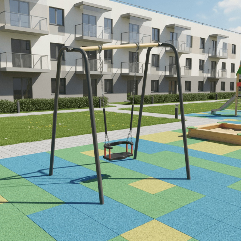 Качели предназначены для размещения на территории парков, дворовых территориях и мест общественного отдыха с целью организации досуга и гармоничного развития детей в возрасте от 4 до 8 лет.Сиденье представляет собой обрезиненный металлокаркас с амортизирующими бортиками сиденья, четырьмя боковыми перекладинами, ободомМонтаж качели производится путем бетонирования грунтозацепов в грунт на глубину не менее 500 мм. Установка должна проводится на ровной площадке, свободной от насаждений. В зоне безопасности должно быть ударопоглощающее покрытие (песок, древесные опилки) минимальной толщиной 300 мм.