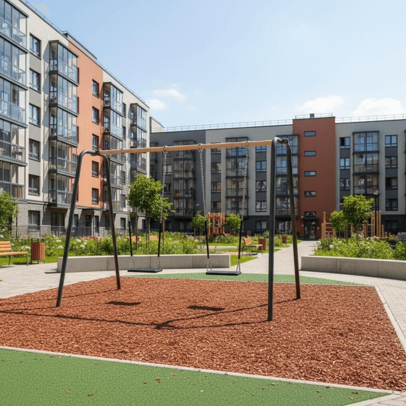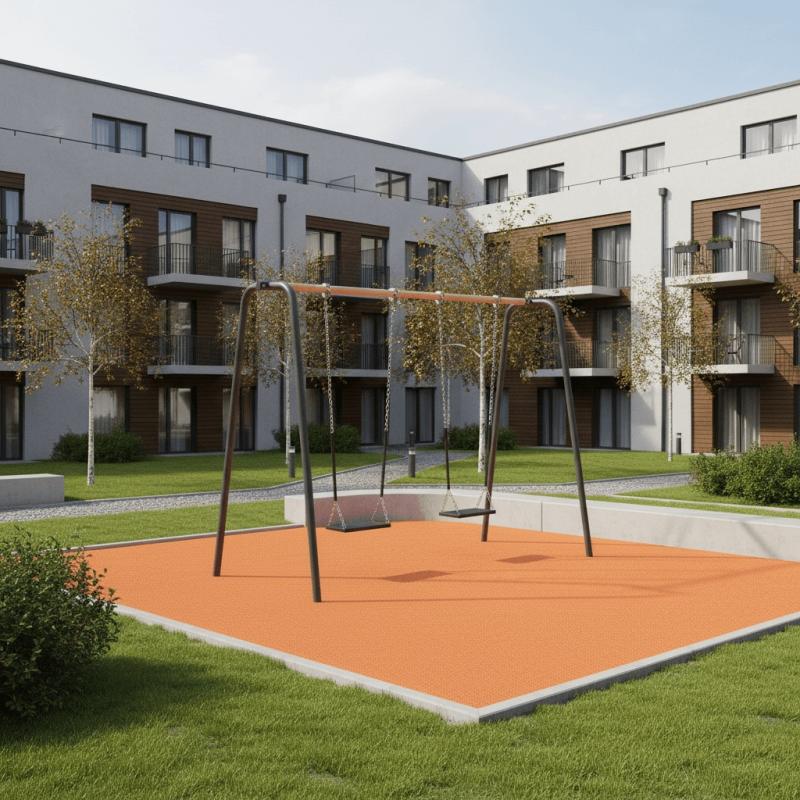 Качели предназначены для размещения на территории парков, дворовых территориях и мест общественного отдыха с целью организации досуга и гармоничного развития детей в возрасте от 4 до 8 лет.Сиденье представляет собой обрезиненный металлокаркас с амортизирующими бортиками сиденья и рельефным узором. Конструкция имеет выгнутую форму, что способствует удалению влаги с сиденья.Монтаж качели производится путем бетонирования грунтозацепов в грунт на глубину не менее 500 мм. Установка должна проводится на ровной площадке, свободной от насаждений. В зоне безопасности должно быть ударопоглощающее покрытие (песок, древесные опилки) минимальной толщиной 300 мм.
