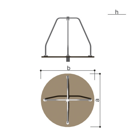 Карусель для детей в возрасте от 3 до 7 лет. Размещается на территориях игровых зон, зон отдыха, спортивных площадках.Выполнена в виде платформы узла вращения и поручней. Центральная стойка на карусели отсутствует, и платформа крепится только к узлу вращения.