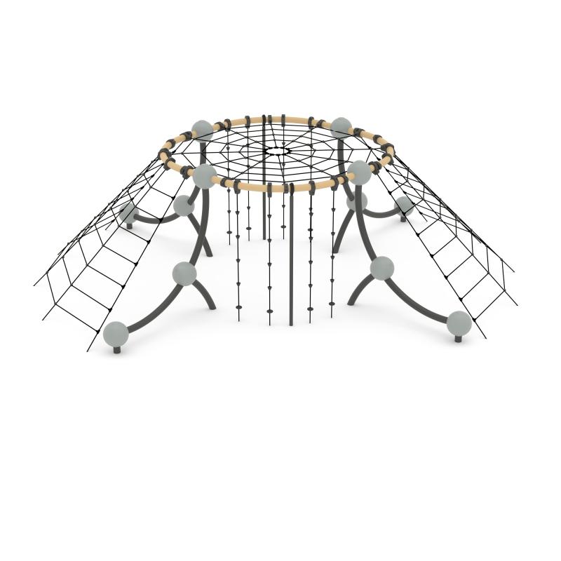 Веревочная конструкция полностью безопасна — она не имеет острых углов, все механизмы и узлы спрятаны в мягкие сферы из полиуретана. Помимо детской безопасности, это обеспечивает сохранность канатного комплекса, защиту креплений от непреднамеренного демонтажа и атмосферных явлений.