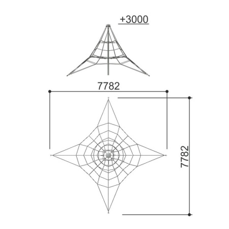 Изделие предназначено для гармоничного развития детей от 8 до 12 лет. Может эксплуатироваться круглогодично.Лаз представляет собой конструкцию в виде пирамиды, состоящего из стойки, к которой должна крепиться канатная конструкция. Канатная конструкция крепится к земле с помощью талрепов для регулирования натяжения канатов.Монтаж лаза производится путем бетонирования грунтозацепов в грунт на глубину не менее 1400 мм. Установка должна проводится на ровной площадке, свободной от насаждений. В зоне безопасности должно быть ударопоглощающее покрытие (песок, древесные опилки) минимальной толщиной 300 мм. Размер площадки не менее 9700*7800 мм.красный канат + черный крепеж