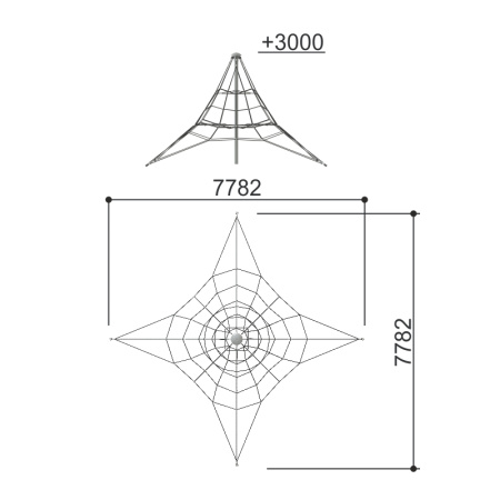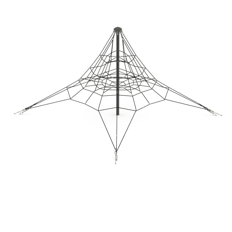 Изделие предназначено для гармоничного развития детей от 8 до 12 лет. Может эксплуатироваться круглогодично.Лаз представляет собой конструкцию в виде пирамиды, состоящего из стойки, к которой должна крепиться канатная конструкция. Канатная конструкция крепится к земле с помощью талрепов для регулирования натяжения канатов.Монтаж лаза производится путем бетонирования грунтозацепов в грунт на глубину не менее 1400 мм Установка должна проводится на ровной площадке, свободной от насаждений. В зоне безопасности должно быть ударопоглощающее покрытие (песок, древесные опилки) минимальной толщиной 300 мм. Размер площадки не менее 9700*7800 мм.черный канат + металлический крепеж