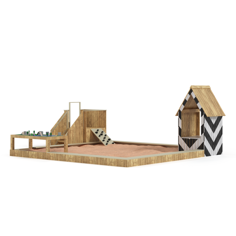 Каркас - металлопрокат сталь Ст3, покрытие - цинкосодержащий грунт, порошковая окраска (RAL по согласованию). Обшивка - древесина, покрытие - антисептик, масло террасное атмосферостойкое для древесины. Горка - сталь нержавеющая AISI 304 толщиной не менее 2 мм, шлифование и электрохимическая пассивация сварных швов. Панели - HPL.