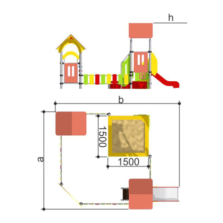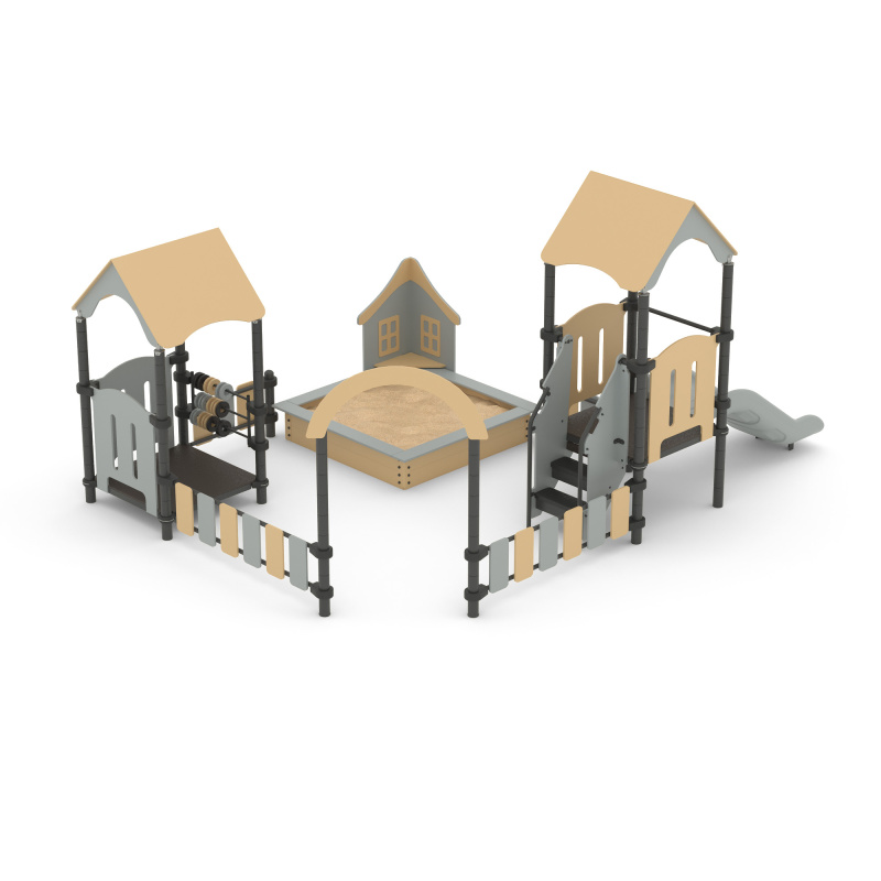 Песочный дворик с горкой – это яркий игровой комплекс с песочницей, горкой и домиками. На домиках установлены счеты, которые помогают развивать мелкую моторику и учится счету. Игры с песком так же развивают мелкую моторику, фантазию и усидчивость. Может устанавливаться на любых площадках. Является не только практичным игровым оборудованием, но и эстетически красивым украшением площадок.