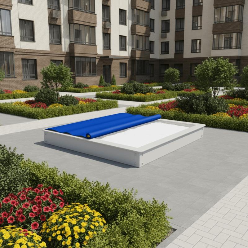 Тент предназначен для укрытия песочниц размером не более 2000 на 2000 мм. Может эксплуатироваться круглогодично во всех климатических зонах.