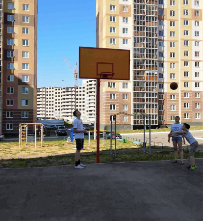 * для полного комплекта заказывайте 2 единицы товараПредставляет собой сборно-разборную конструкцию, состоящую из стойки, щита с кольцом и сеткой.