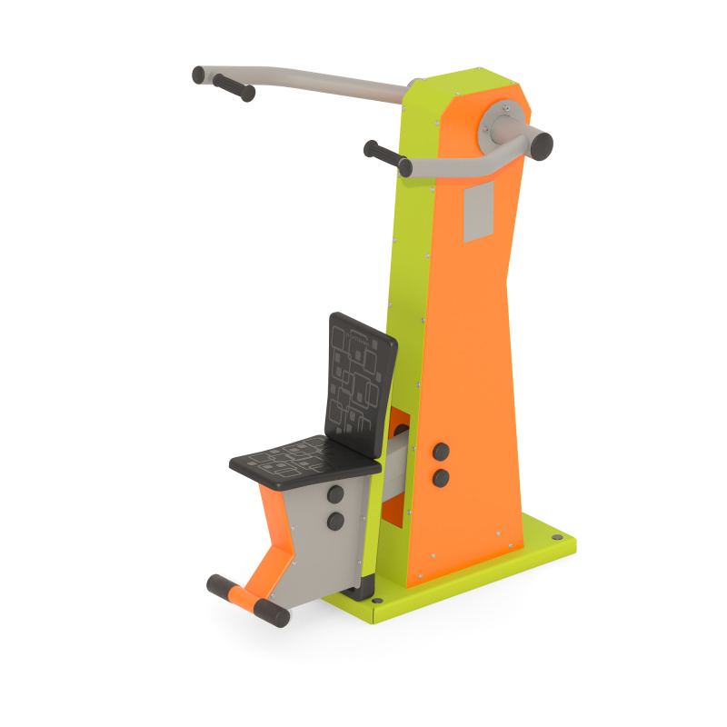 Комплекс предназначен для доступных занятий детьми физической культурой, используя в качестве нагрузки собственный вес, может быть использован при тренировочных занятиях и проведении спортивных мероприятий. Контактные места изолированы для комфортного занятия на оборудовании.В положении сидя, на выдохе, потянуть рукоятки к верхней части груди, заводя локти назад; медленно возвращаясь в исходное положение сделать вдох.