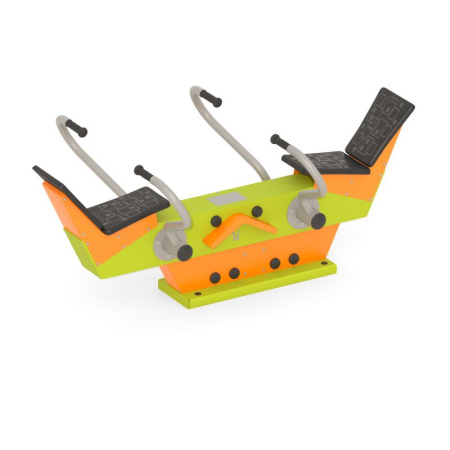 Комплекс предназначен для доступных занятий детьми физической культурой, используя в качестве нагрузки собственный вес. Контактные места изолированы для комфортного занятия на оборудовании.Для занятий необходимо разместится на сидении, ноги расположить на упорах, руками охватить рукояти. Для пользования изделием необходимо периодически притягивать к себе рукояти в горизонтальном направлении. Посредством подвижной рычажной системы движение рукоятей приводит к горизонтально-вертикальному движению сиденья, которому противодействует вес занимающегося.