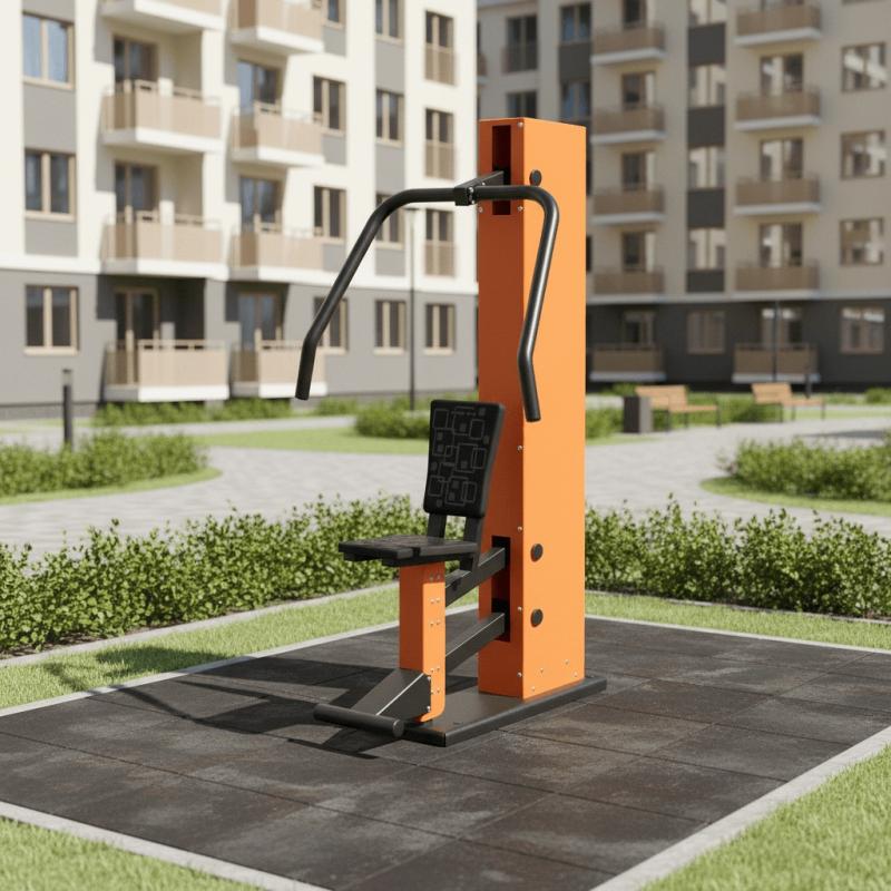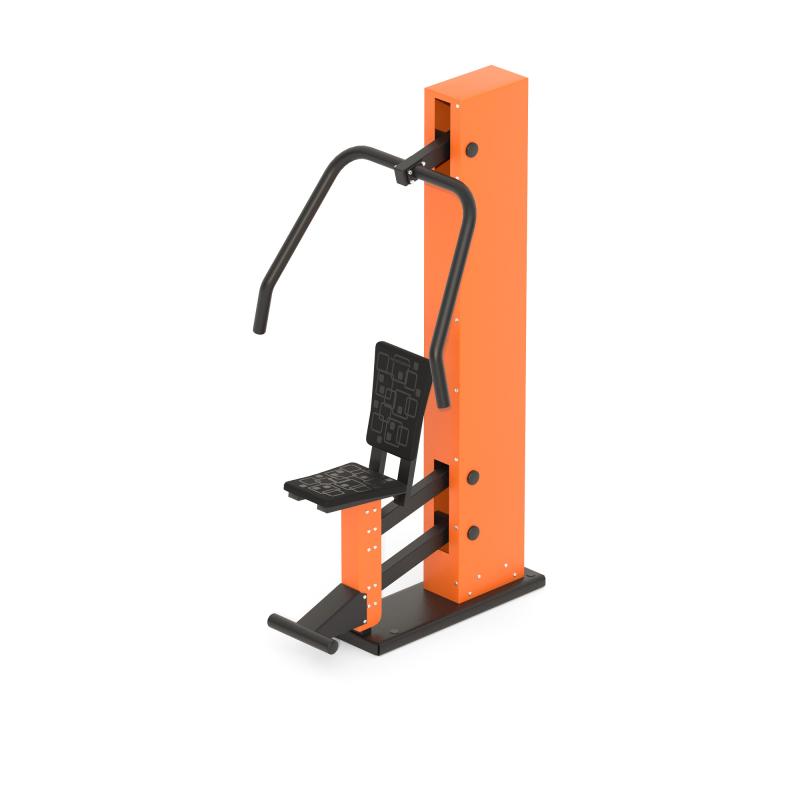 Уличный тренажер «Жим от груди» развивает всю большую грудную мышцу, малую грудную мышцу, трицепсы, переднюю часть дельтовидной мышцы, зубчатые и клювовидно-плечевые мышцы.Сидя на скамье: взять рукоятки хватом сверху, сделать вдох и выжать рукоятки до полного выпрямления рук; по окончании движения сделать выдох, медленно возвращаясь в исходное положение.Следует заметить, что чем уже хват, тем большая нагрузка перемещается на трицепсы. Тренажер очень эффективен при формировании сильного и красивого торса.