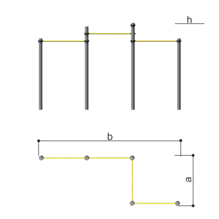 Спортивное оборудование - комплекс турников входит в комплекс «Воркаут», наряду с другими спортивными элементами устанавливается на территориях игровых зон, зон отдыха, спортивных площадках для пользователей от 14 лет. Предназначено для доступных занятий физической культурой на свежем воздухе. Круглогодичное эксплуатирование.Изделие устанавливается на открытых уличных участках, находящихся под контролем ответственного лица – эксплуатанта. Установка должна проводится на ровной площадке, свободной от насаждений. Над зоной безопасности, должно быть свободное пространство, т.е над ней не должно быть ни веток, ни элементов других конструкций.
