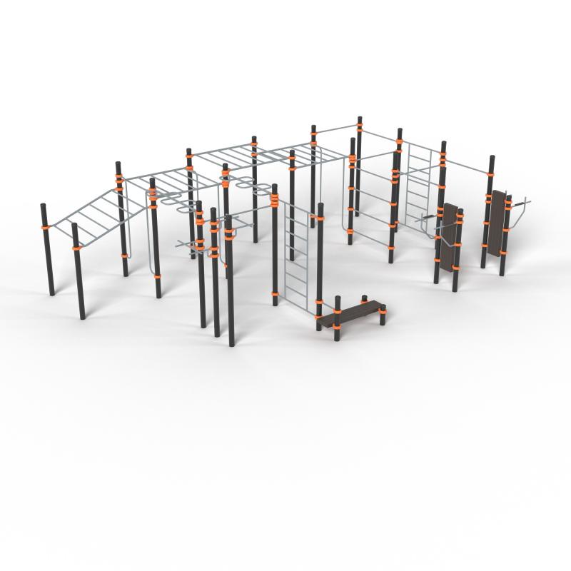 Полноценный уличный спортивный комплекс для силовых стрит-тренировок всего тела. Включает в себя набор базовых элементов для развития физической силы, гибкости и выносливости.