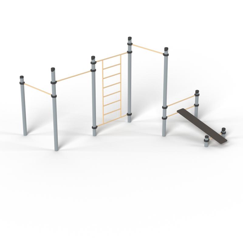 Спортивное оборудование - каскад турников входит в комплекс «Воркаут», наряду с другими спортивными элементами устанавливается на территориях игровых зон, зон отдыха, спортивных площадках для пользователей от 14 лет. Предназначено для доступных занятий физической культурой на свежем воздухе. Круглогодичное эксплуатирование.Изделие устанавливается на открытых уличных участках, находящихся под контролем ответственного лица – эксплуатанта. Установка должна проводится на ровной площадке, свободной от насаждений. Над зоной безопасности, должно быть свободное пространство, т.е над ней не должно быть ни веток, ни элементов других конструкций.