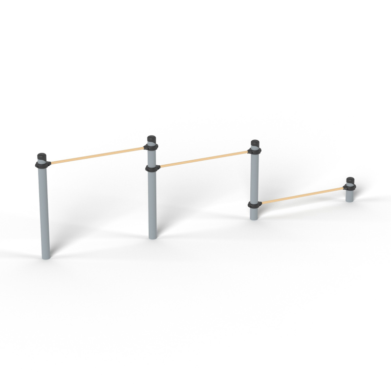 Спортивное оборудование - тройной каскад турников для отжиманий и подтягивания входит в комплекс «Воркаут», наряду с другими спортивными элементами устанавливается на территориях игровых зон, зон отдыха, спортивных площадках для пользователей от 14 лет. Предназначено для доступных занятий физической культурой на свежем воздухе. Круглогодичное эксплуатирование.Изделие устанавливается на открытых уличных участках, находящихся под контролем ответственного лица – эксплуатанта. Установка должна проводится на ровной площадке, свободной от насаждений. Над зоной безопасности, должно быть свободное пространство, т.е над ней не должно быть ни веток, ни элементов других конструкций.